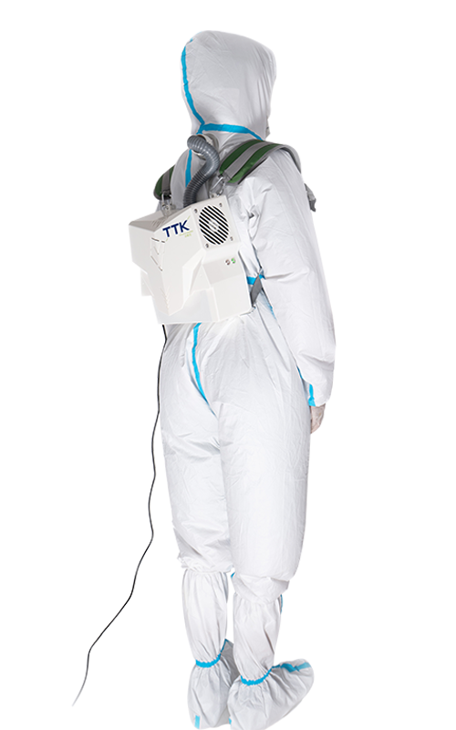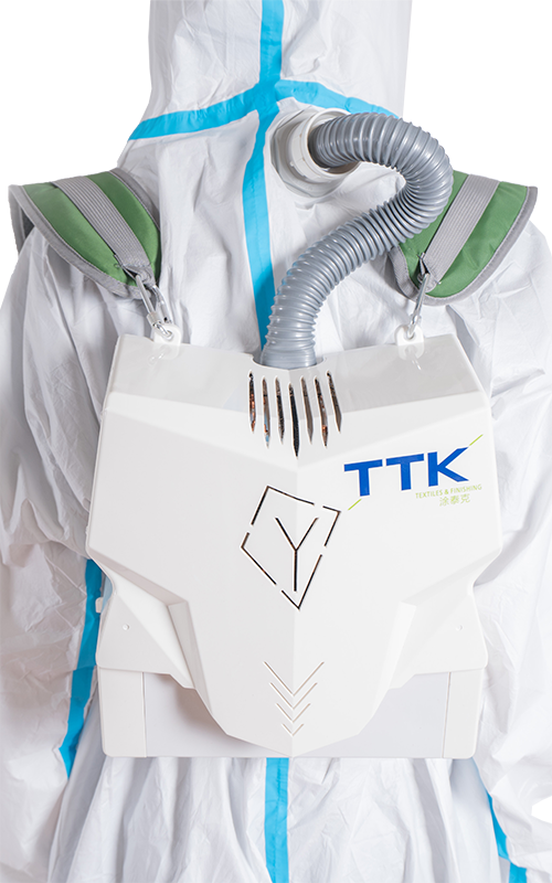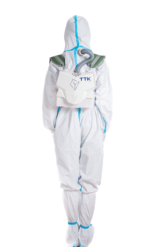 Technologie chlazení elektrotermální výměny, přetlaková vysoce účinná filtrace N95 izoluje invazi viru na límci a manžetě, zlepšuje úroveň ochranného oděvu, kladný tlak v ochranném oděvu, cirkulaci čerstvého vzduchu, bezpečný a pohodlný